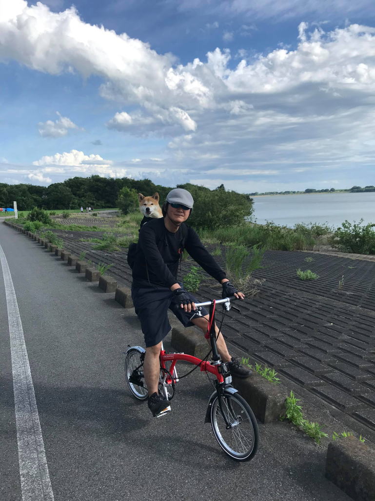 自宅から道の駅かぞわたらせまでドライブし、そこからBromptonで遊水地に向かった。背中に飼い犬ブレロ2号を背負ってのライド。貯水池(谷中湖)は独特なハート型をしているが、大きいので道の駅の展望台からみてもよくわからない。